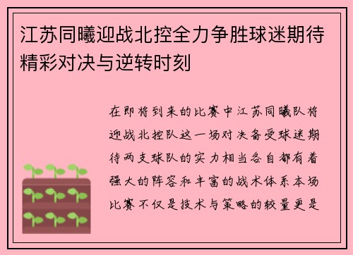 在2023赛季中超联赛的争夺中,布里兰对阵北京国安的精彩较量引起了广泛关注。这场比赛不仅是两支球队实力的碰撞,更将深刻影响整个联赛的争冠格局。文章将从四个方面进行分析:首先,比赛结果如何影响两队士气;其次,战术安排和执行对争冠形势的重要性;接着,关键球员的表现及其后续效应;最后,对于其他竞争者的心理与策略变化。通过这些角度,我们能够更全面地理解这场比赛在整个中超联赛中的重要性。 1、比赛结果影响...